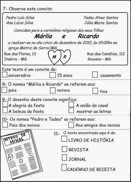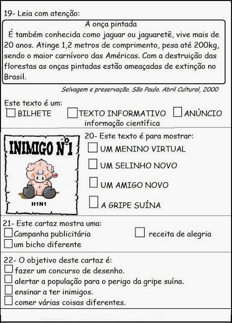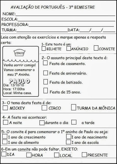 MODELO DE AVALIAÇÃO ESCRITA PARA 2º OU 3º ANO