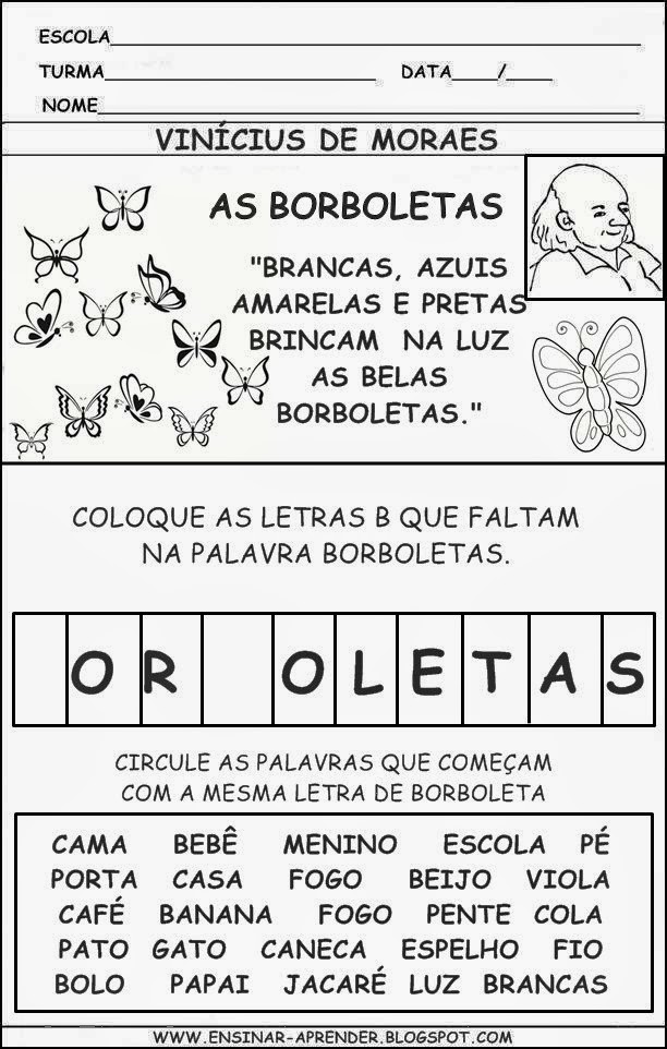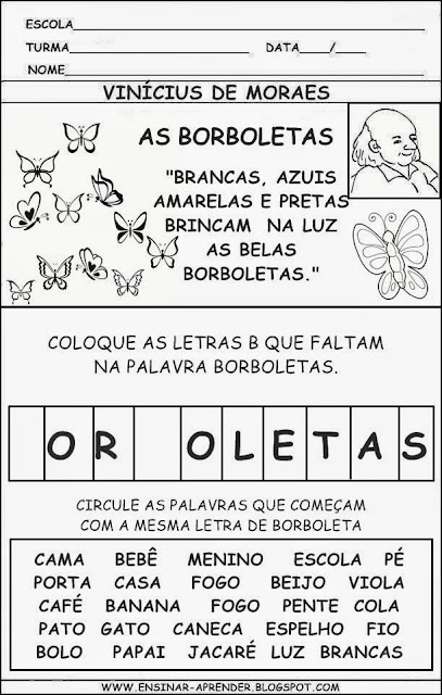 Atividades de alfabetização letra B